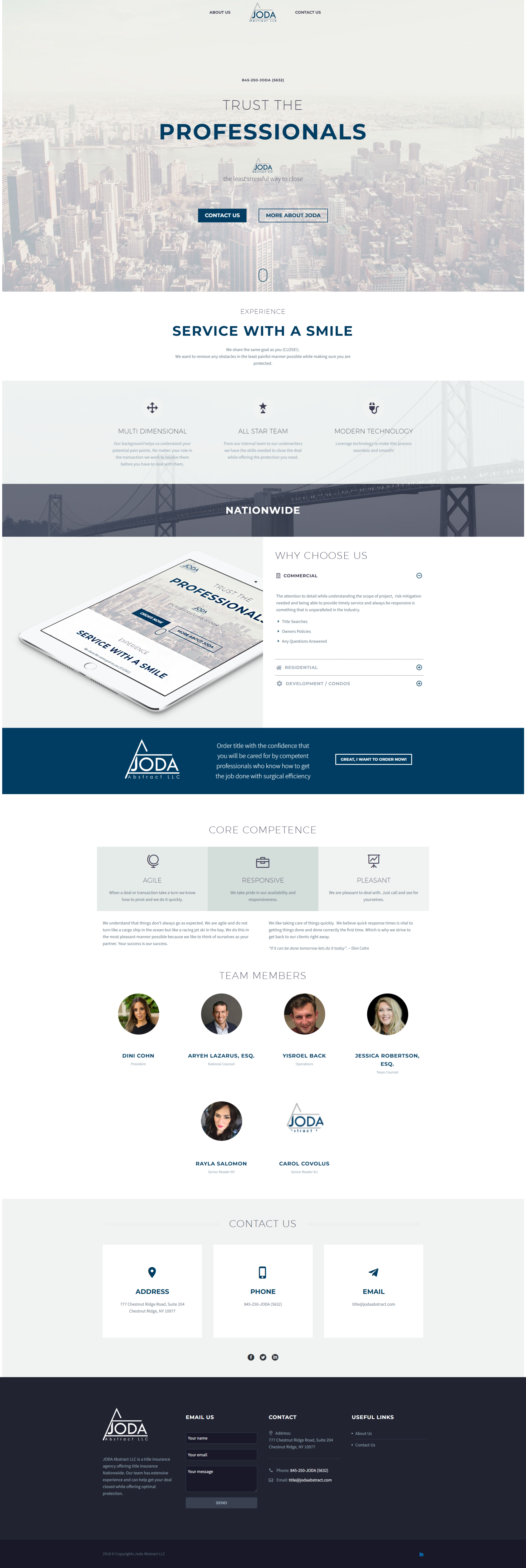 • Clear Service Presentation: Structured content and navigation to help clients quickly understand how the title process works, what services are offered, and how Joda Abstract supports smoother real estate transactions.